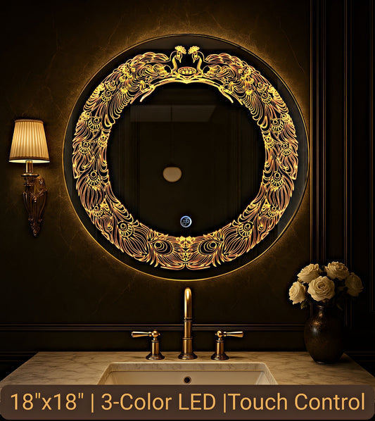 luminatri Round Bathroom LED Mirror Size 18"X18" inch with 3 color LED and Touch sensor Bathroom Mirror